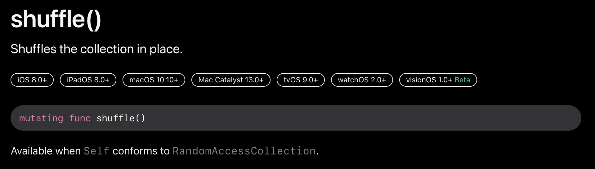 shuffle의 경우에는 해당 array의 순서가 달라지고, shuffled의 경우에는 달라진 순서의 array를 반환한다. (원본은 그대로)