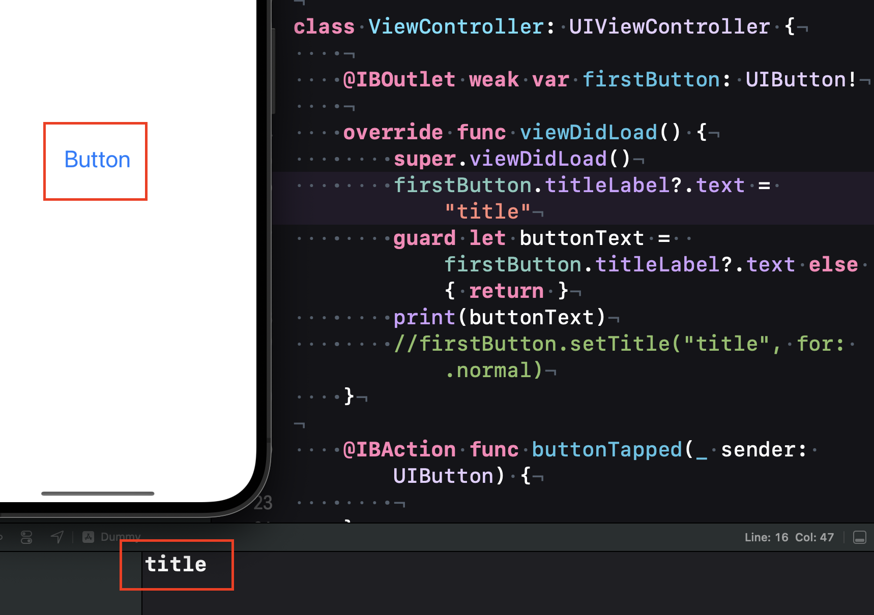 // guard let buttonText = firstButton.titleLabel?.text else { return }