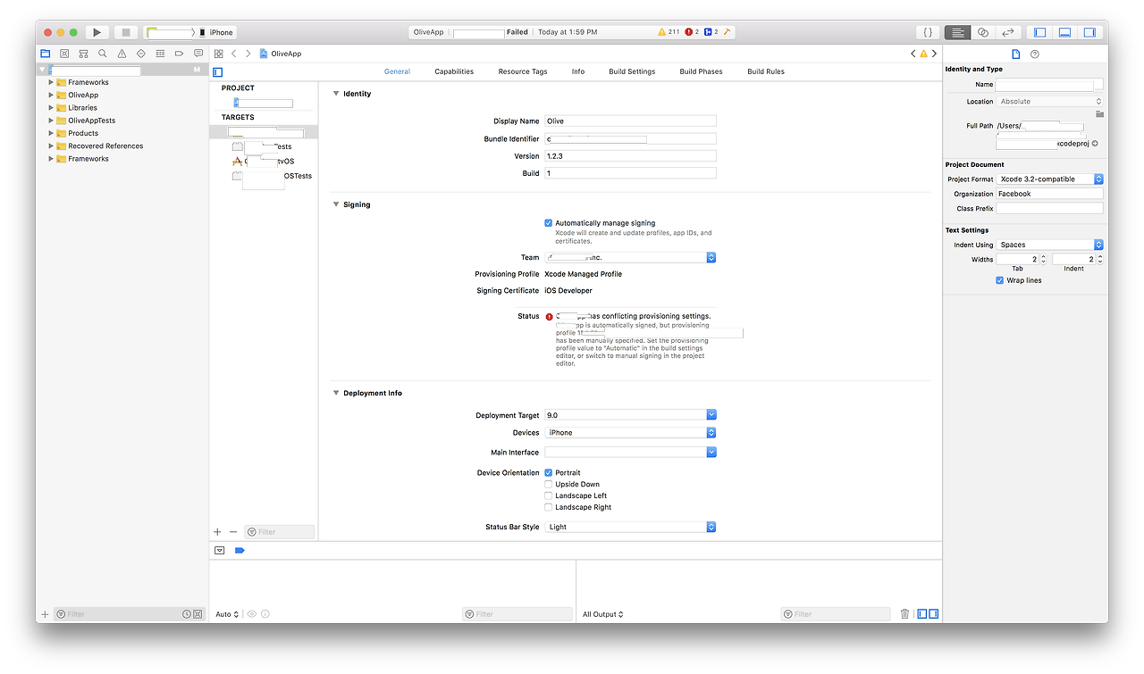 .app has comflicting provisioning settings.