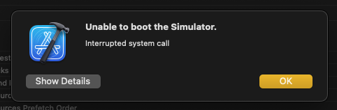 I was trying to run iOS 15 Simulator on Xcode 15.0.1, but I got an error: "Unable to boot the Simulator. Interrupted system call" I tried: Reinstalling Xcode Deleted "Derived Data&q...
